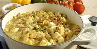 Modo de fazer: Deixe o bacalhau de molho em água gelada, de um dia para o outro, trocando a água várias vezes. No dia seguinte, limpe o baca-lhau, retirando pele e espinhas, e corte em pedaços. Numa panela grande, aqueça o óleo e depois arrume em camadas a batata, a cebola, o pimentão, o tomate e o bacalhau. Regue com o caldo de galinha, tampe e cozinhe em fogo baixo por 30 min, sacudindo a panela de vez em quando. Quando estiver pronto, adicione as azeitonas. Sirva com arroz branco.