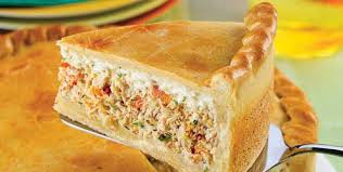 Em uma tigela, misture os ingredientes da massa até ficar homogêneo. Com uma parte da massa, forre uma fôrma de fundo removível untada e enfarinhada, e reserve o restante de massa para cobrir. Em uma tigela, misture os ingredientes do recheio e coloque na fôrma forrada com a massa. Cubra com o restante da massa e pincele a gema. Leve ao forno, preaquecido, por 1hora ou até assar e dourar levemente. Deixe descansar por 10 minutos.