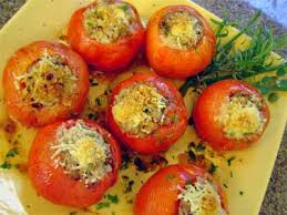 • Misture o purê de tomate com o caldo de carne e regue os tomates recheados. Leve ao forno quente para assar.
