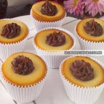 Bata no liquidificador todos os ingredientes da massa até ficar homogêneo. Distribua em forminhas de papel untadas e enfarinhadas em forminhas de empada e leve ao forno médio, preaquecido, por 20 minutos ou até crescer e dourar ligeiramente. Leve o chocolate picado com o creme de leite ao banho-maria, mexendo sempre até derreter. Reserve na geladeira. Faça uma cavidade no centro de cada bolinho com a ajuda de uma faca e uma colher. Retire o miolo, cuidando para não furar o fundo nem as laterais. Coloque o creme em um bico de confeitar e preencha as cavidades. Sirva em seguida.